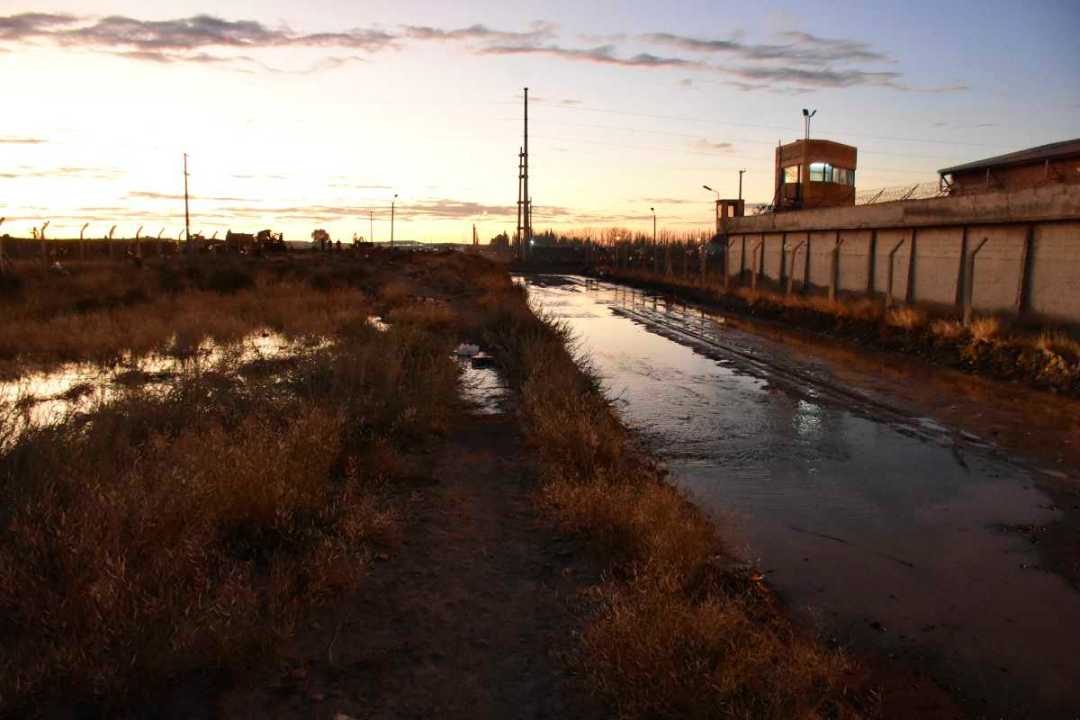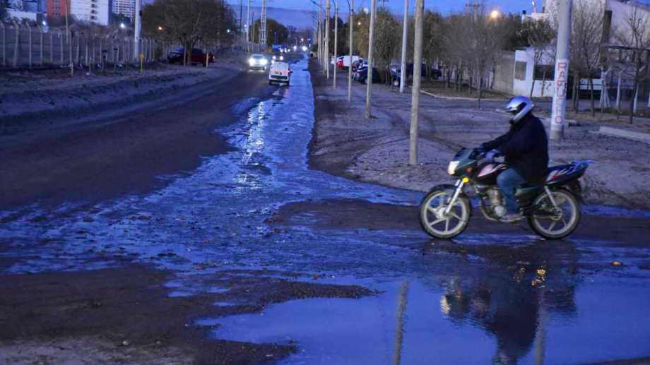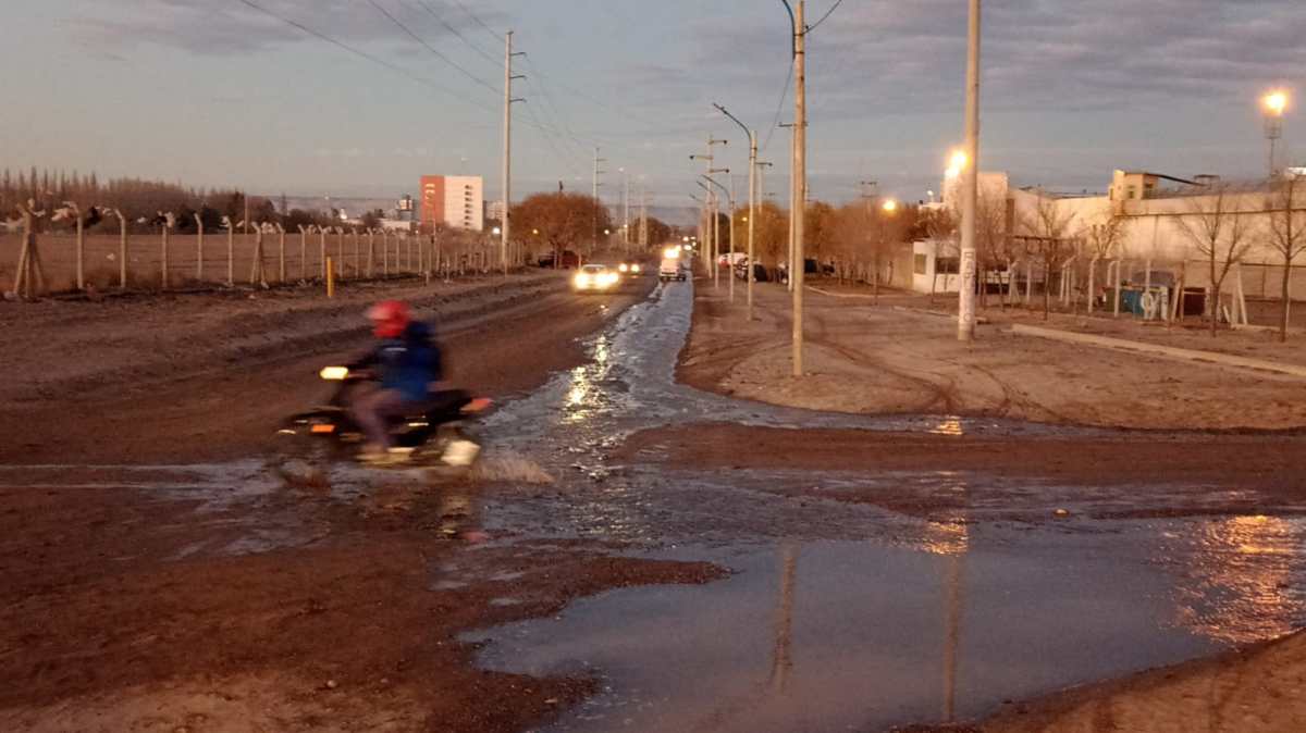 Bajo agua: así amaneció un barrio de Roca por una pérdida en un tanque de Aguas Rionegrinas
