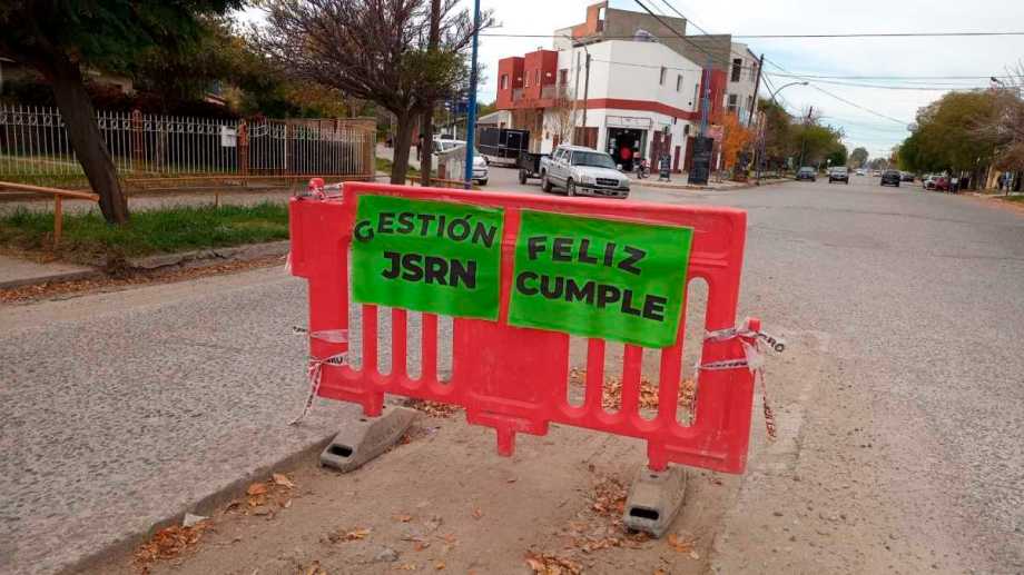 Tras varias demandas por las reparaciones en las cañerías de Aguas Rionegrinas que quedaron sin terminar, los vecinos realizaron una intervención en una de las vallas de seguridad vial más próxima al pozo que persiste sobre calle La Plata casi esquina Bahía Blanca, en Roca.