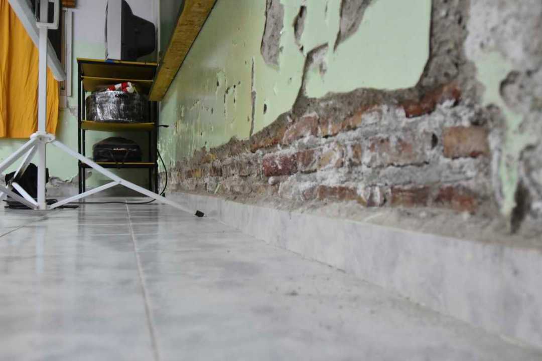 El techo no es capaz de contener una lluvia y el agua ingresa a algunas aulas como si fuera una canaleta. Los revoques del cielorraso se caen a pedazos y ni hablar de las grietas de las paredes lo que a simple vista y sin saber demasiado en la materia, uno puede sospechar que son de fondo.
