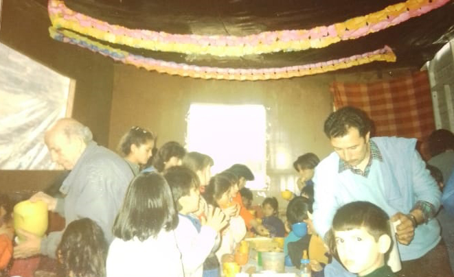 Los 120 chicos jugaban en el patio de 50 metros por 15. También, habían construido un salón sencillo con madera que les habían donado y armaron mesas. El lugar funcionaba con donaciones, la leche la entregaba el Municipio y la Provincia daba el pan, dulce y queso.
