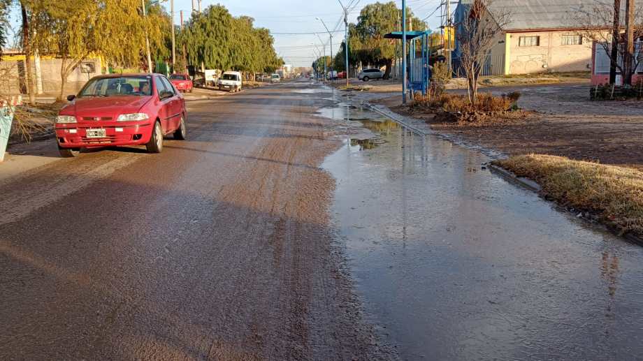 La rotura en un caño de la red de agua potable hizo estragos. Los vecinos reclaman un arreglo a Aguas Rionegrinas desde ayer, pero aún no recibieron respuestas.