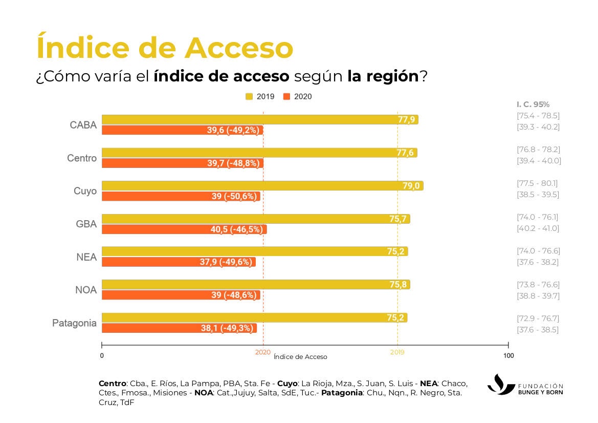 Lo más notable es que el índice de acceso 2020 es de 39,5 y disminuyó 48% respecto de 2019.