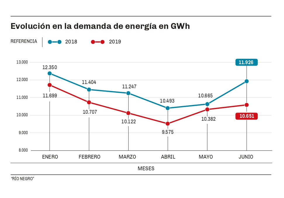De acuerdo al último informe mensual elaborado por Cammesa, la compañía administradora del mercado mayorista eléctrico, la demanda final de junio alcanzó los 10.651 GWh contra los 11.926 GWh que se registraron en junio del año pasado.