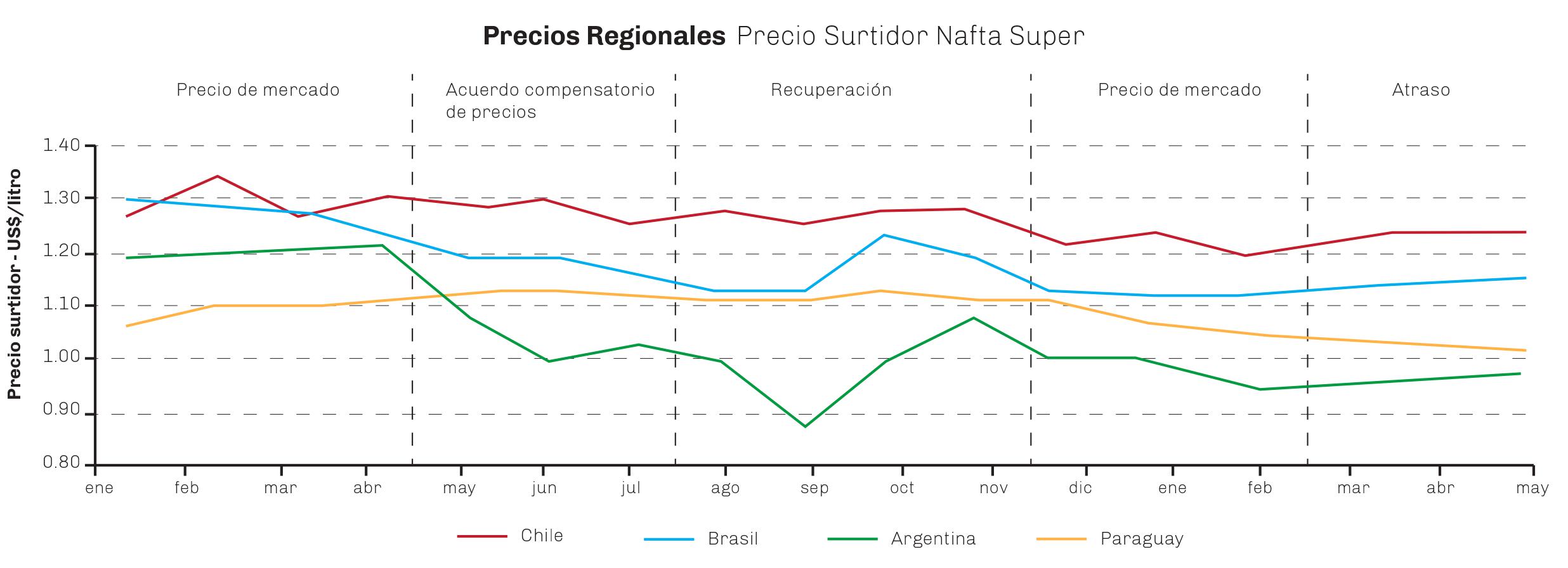 De acuerdo a lo que planteó en Buenos Aires un vicepresidente de los principales jugadores del mercado de refinación y venta de combustibles de la Argentina, las naftas son las más baratas de la región desde hace exactamente un año.