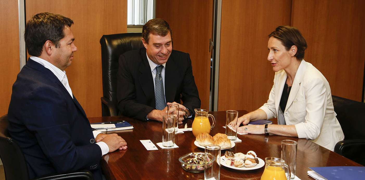 La diplomática estuvo acompañada del jefe de la Sección Política de la UE, Francois Roudie, el jefe de la Sección Económico Comercial, Martin Pouliot y Luis Pereira Mateus, de Proyectos de Cooperación.