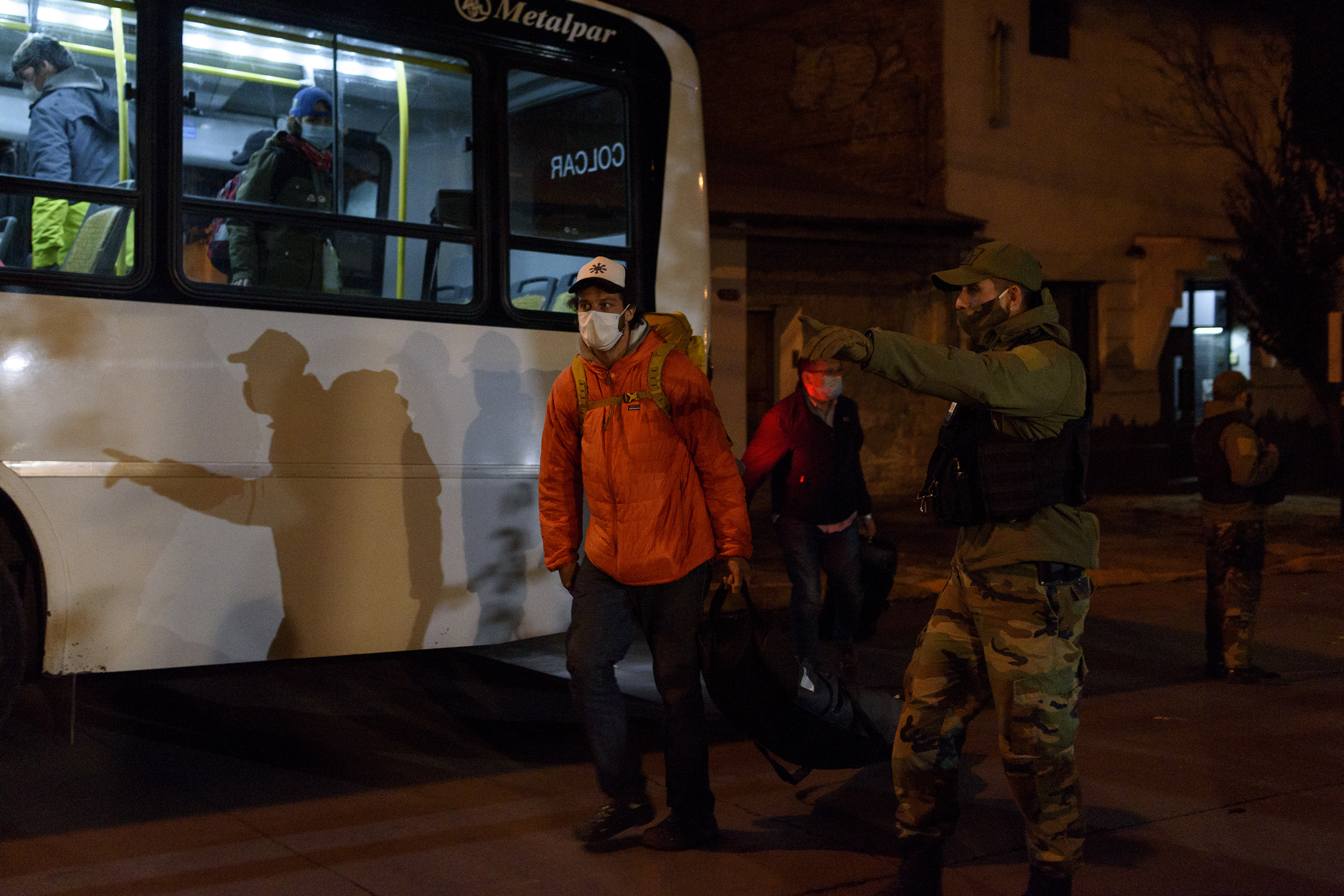 El grupo de Bariloche arribo en medio de un celoso operativo sanitario y de seguridad, que no estuvo exento de algunos contratiempos. En un primer momento se esperaba que el contingente llegara a la terminal de colectivos local. Después hubo cambio de planes. Los barilochenses subieron en el puesto de control de Dina Huapi a dos colectivos que los trasladaron hasta el hotel en esta ciudad.