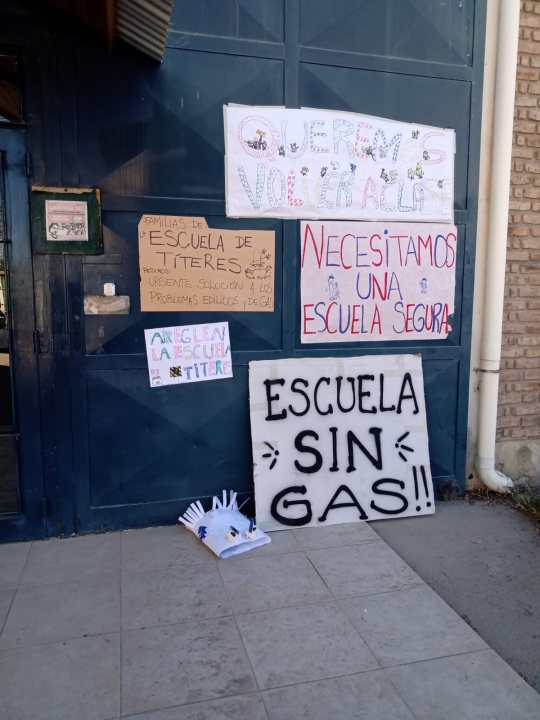Al quedarse sin calefacción no se puede retomar la actividad presencial. “Arreglen la escuela de títeres”, decía el cartel que era sostenido por uno de los pequeños estudiantes. “Necesitamos una escuela segura”, indicaba otro letrero. La comunidad educativa de la escuela realizó un reclamo esta tarde para visibilizar su situación.