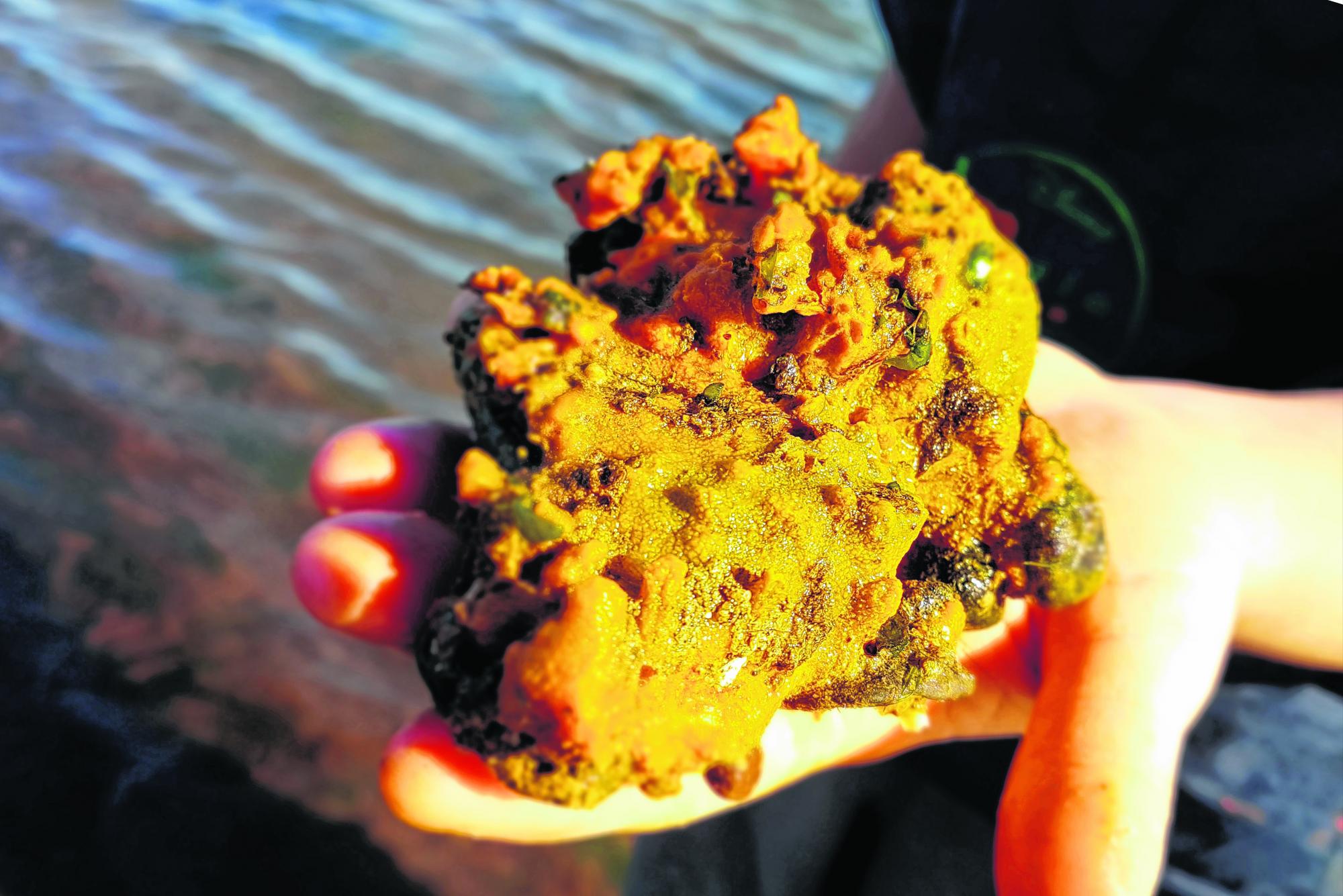 Su nombre científico es Hymeniacidon perlevis, y es una esponja marina de color naranja que, aunque es originaria de Gran Bretaña, desde hace años se encuentra en el Golfo San Matías. Su presencia es evidente sobre todo en Punta Verde, una de las playas más tradicionales de San Antonio. En ese sector desde lejos se percibe una franja anaranjada que vuelve vistosa la costa. Pero su abundancia no estaría ligada a ningún dato alentador. Por el contrario, los científicos especulan que proliferó debido a la alta contaminación que existiría en el lugar. Porque ellas se alimentan justamente de esos desechos, que en su caso son considerados nutrientes.