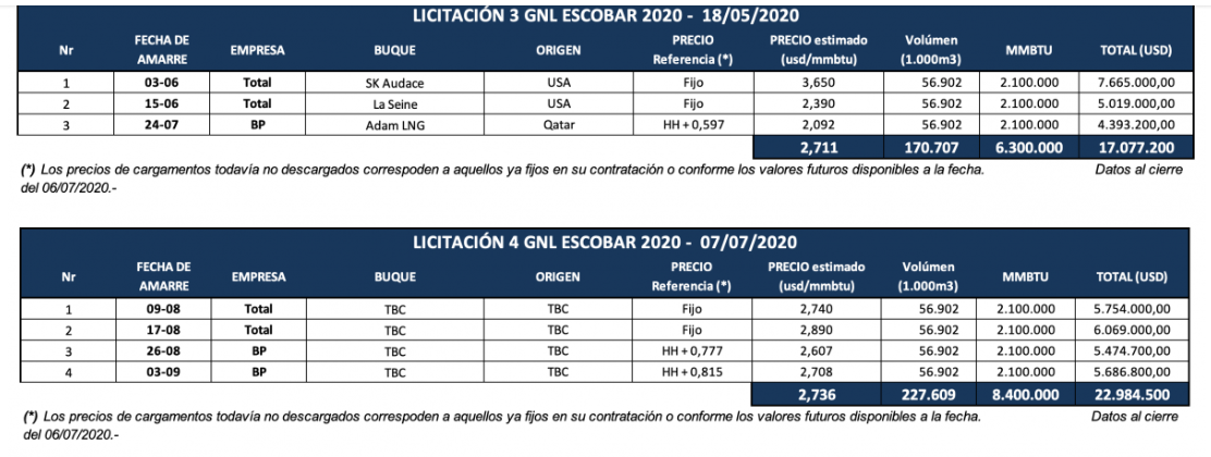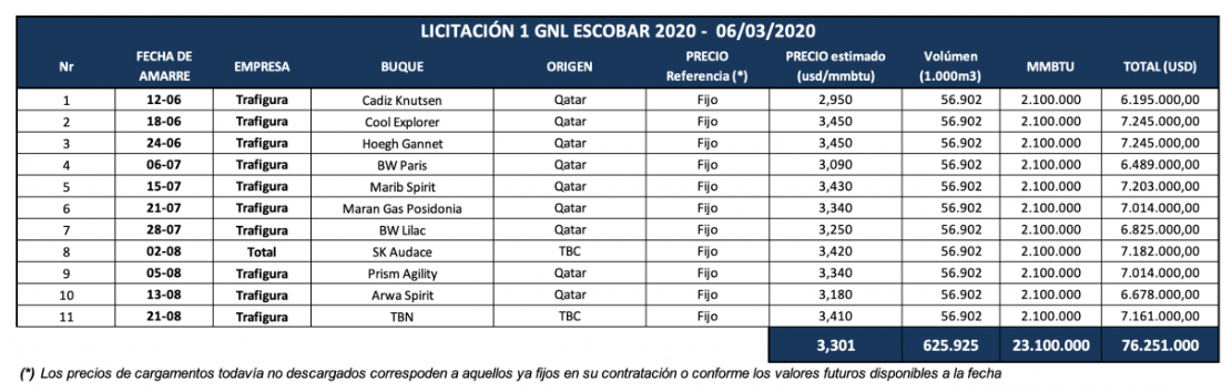 En total la firma adquirió este año 28 cargamentos de GNL dado que en la última licitación solo compró cuatro de los cinco buques que estaban previstos. Y anunció que puso fin a las compras previstas para este año.