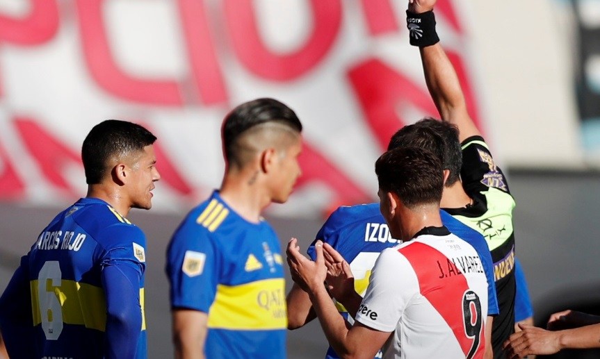 Boca protestó mucho la decisión, porque lo dejó con uno menos y encima cuatro minutos después Julián Álvarez metió un golazo para encaminar la victoria del equipo del Muñeco. Al cabo del primer tiempo, jugadores visitantes y parte del cuerpo técnico de Sebastián Battaglia se le fueron al humo a la terna, pero la historia ya estaba juzgada.