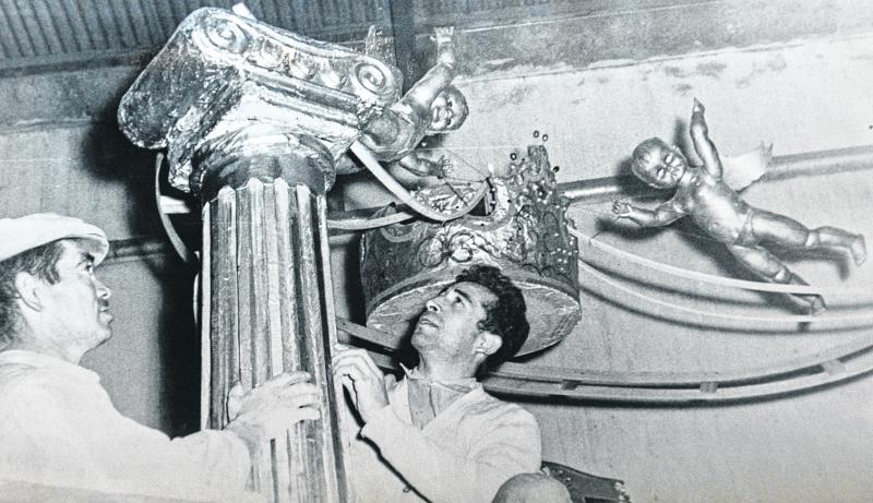 Ornamentación. La edición de este periódico decía respecto de esta foto: “Otro detalle de las artísticas ornamentaciones que presentan las lujosas carrozas construidas. Los grupos alegóricos han sido creados por artistas de sólidos conocimientos”.