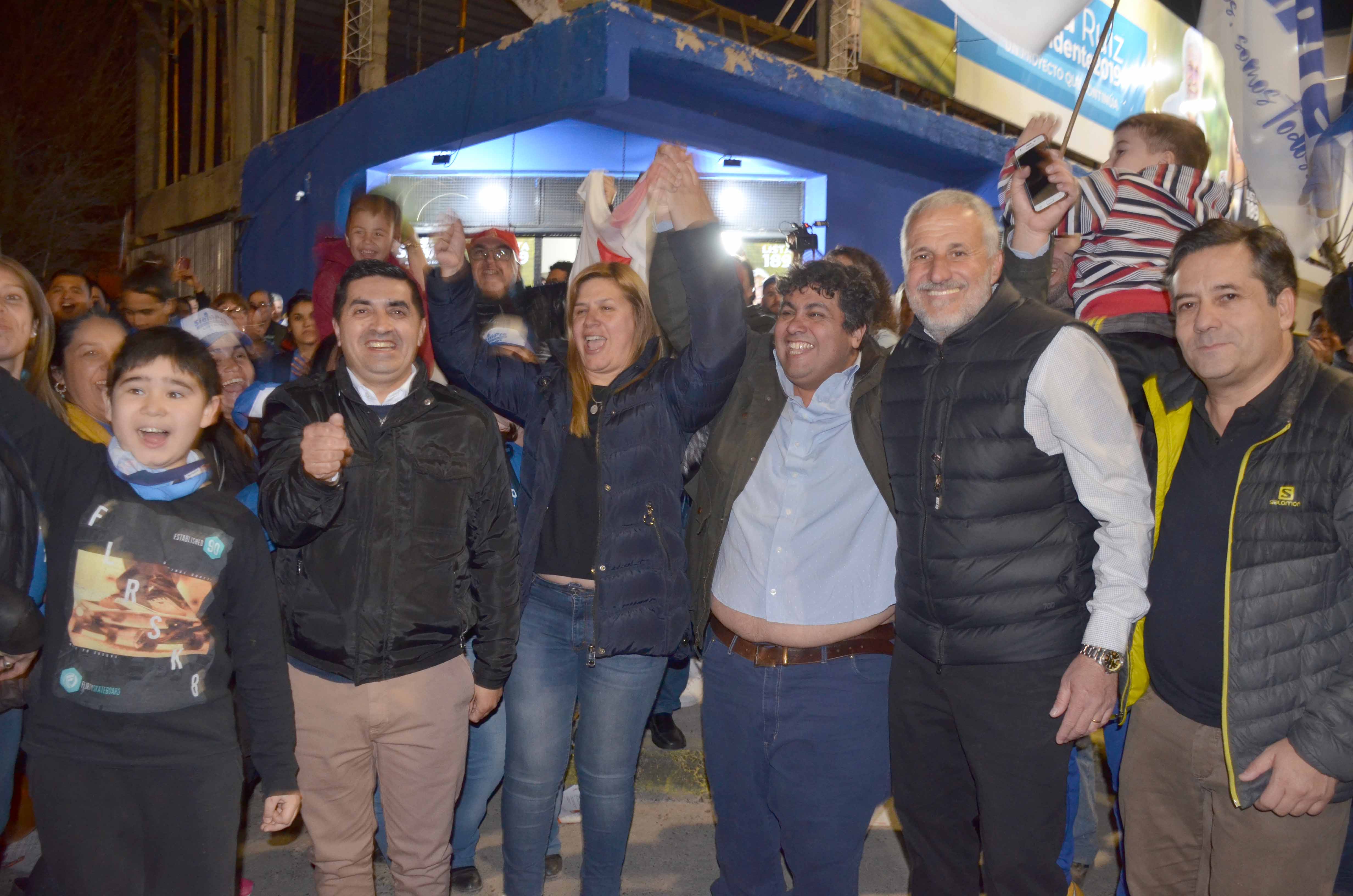 La intendenta electa Gloria Ruiz anoche en los festejos de Plottier foto Yamil Regules)