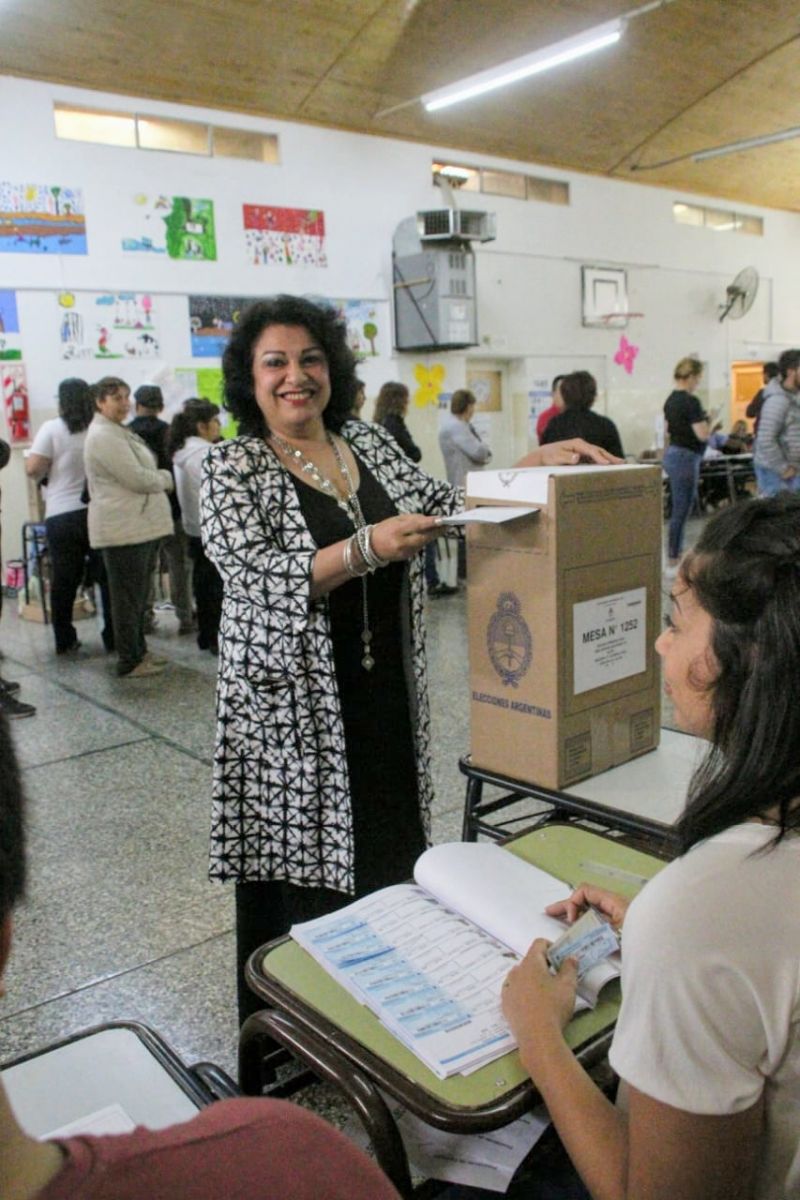Fue acompañada por la intendenta electa, Liliana Martín, que había cumplido con su obligación cívica minutos antes en la Escuela 229.
