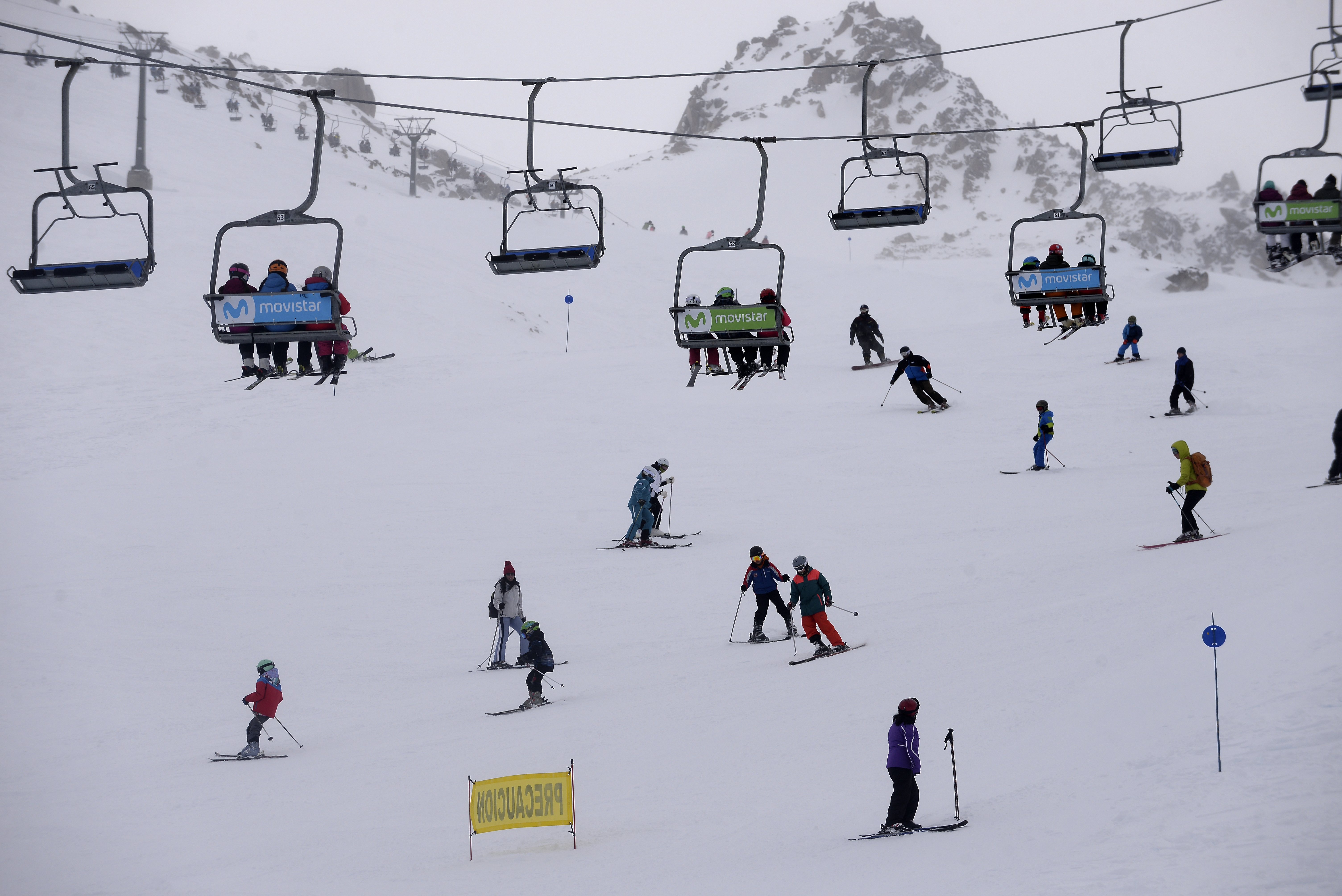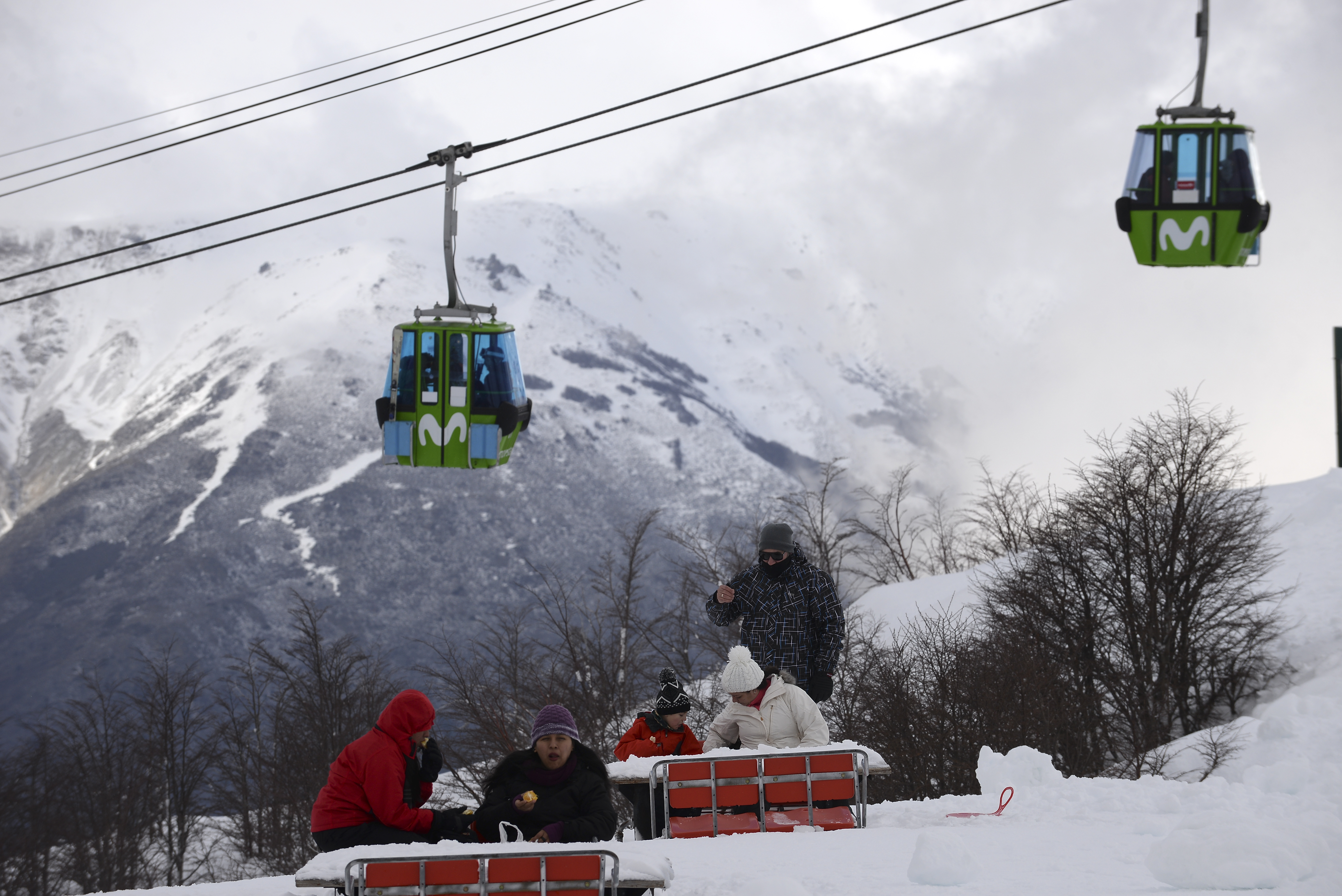 Al descender de la telecabina miles de personas disfrutan la nieve de distintas maneras. Están los niños que tienen en sus manos la pinza para “fabricar” bolas de nieve, que se vende en los comercios de la base.