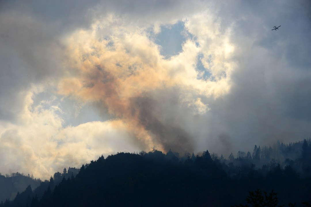 Las columnas se humo se elevaban hacia el cielo esta tarde y el fuego descendía por los valles escarpados a paso lento, pero firme. Turistas se detenían en el Cañadón de la Mosca (un tramo serpenteante de la ruta 40 entre Bariloche y El Bolsón) para observar y fotografiar los focos secundarios que irrumpían entre los cipreses y pinos que crujían por el fuego.