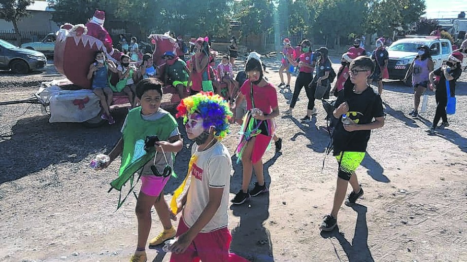 A los vecinos que recorrían las calles de la localidad con el personaje de Papá Noel o Mamá Noel, la pandemia los “dejó fuera de recorrida”. Pero una treintena de jóvenes y adolescentes que integran el grupo de “jóvenes del barrio Unión”, que llevan años organizando los festejos del día del niño en su barrio, tomaron la posta y se propusieron llevar adelante el desafío.