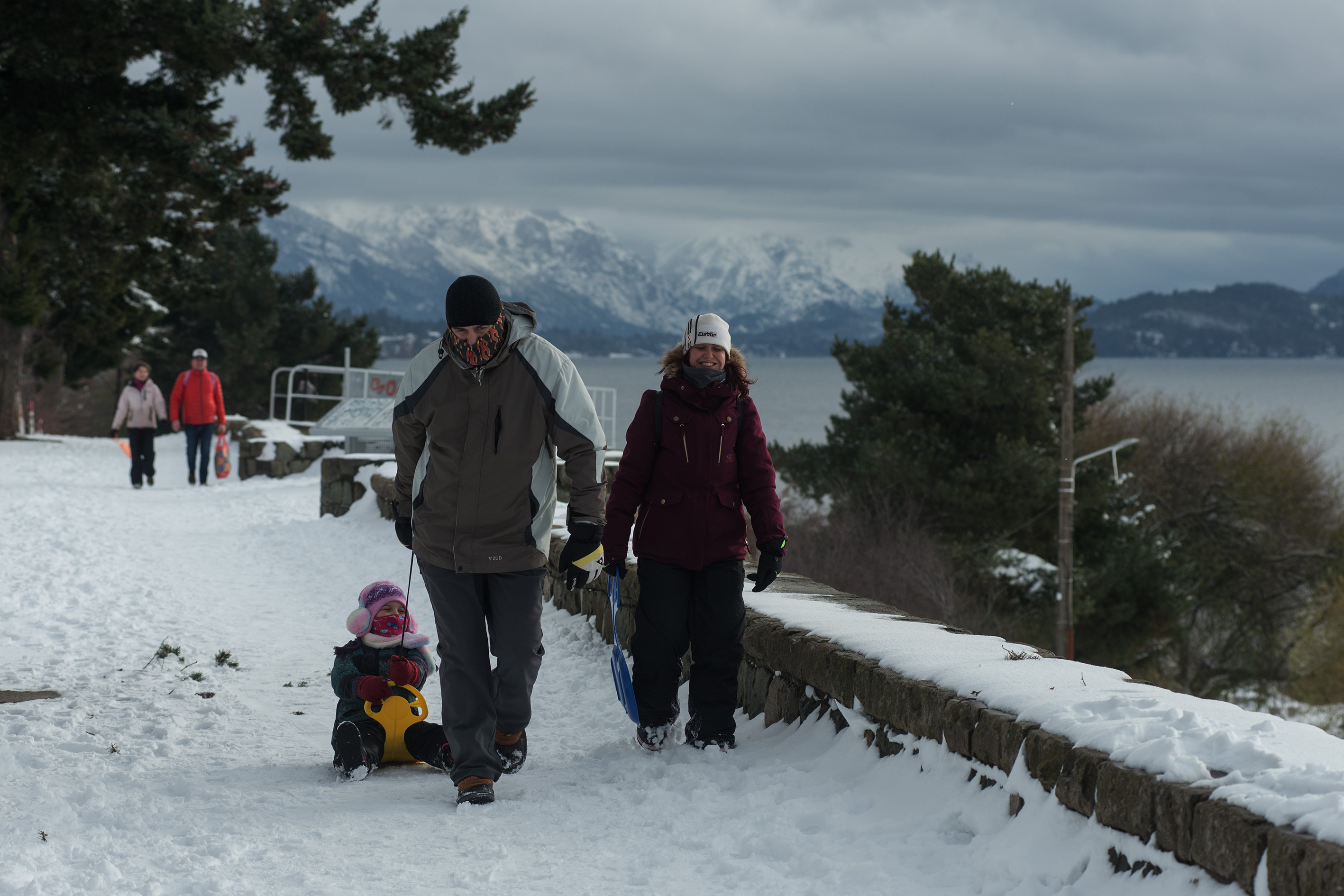 La pandemia dejó la ciudad ícono del invierno argentino sin visitantes. Los residentes aprovecharon el domingo y salieron a disfrutar.