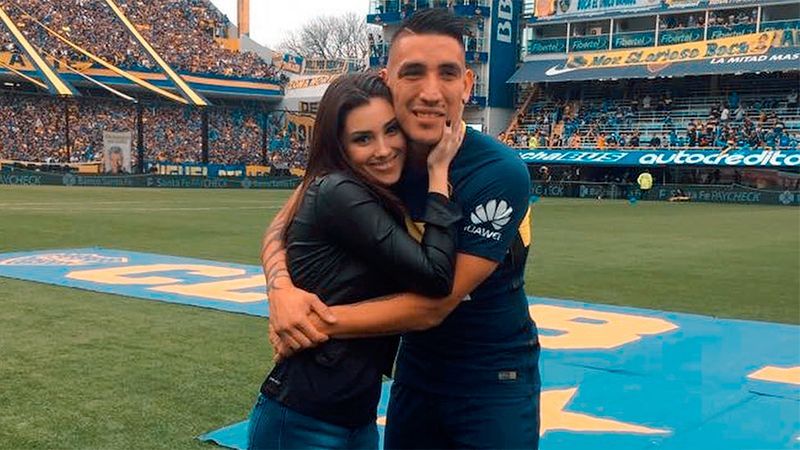 – La joven junto al jugador, cuando vestía los colores de Boca. –