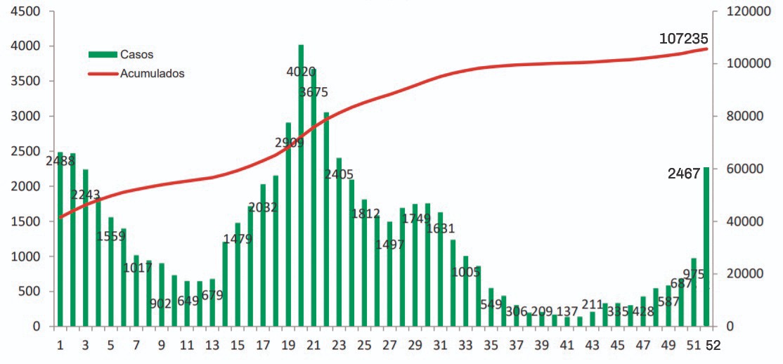 La curva de contagios venía en alza desde mediados de noviembre, con un crecimiento del 191% al 25 de diciembre. Esa semana los confirmados fueron 975, ratificando que una tendencia se observaba en buena parte del país.
