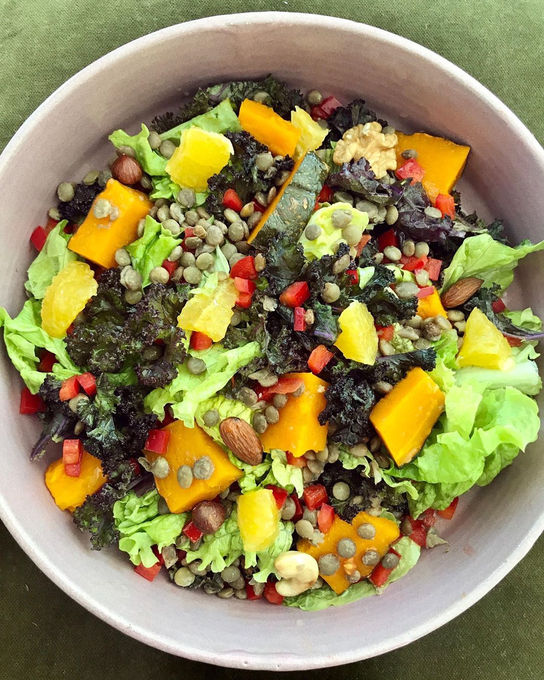 Básicamente hay cinco cosas fundamentales: legumbres, cereales, verduras crudas, cocidas y grasas. Dentro de las legumbres: lentejas, garbanzos, soja, todas. En cuanto a cereales: arroz, quinoa, mijo, fideos, una porción de pan… Verduras crudas la quieras, al igual que las cocidas. En grasas están el aceite de oliva, los frutos secos, la palta… No quiero decir de hacer un plato con todo esto, pero si asegurarnos que haya cada uno de ellos a lo largo del día. Y obvio que cada uno lo va a preparar como más le guste.