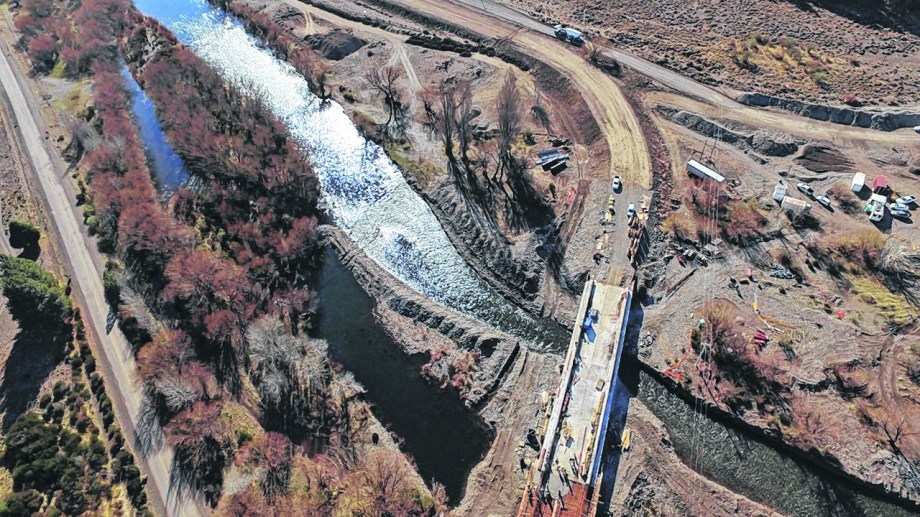 También la obra del nuevo puente sobre el río Curi Leuvú en Chos Malal evolucionó “rápidamente” en los últimos meses hasta casi un 70% de ejecución y, para estos días, ya está programado el montaje de las vigas.