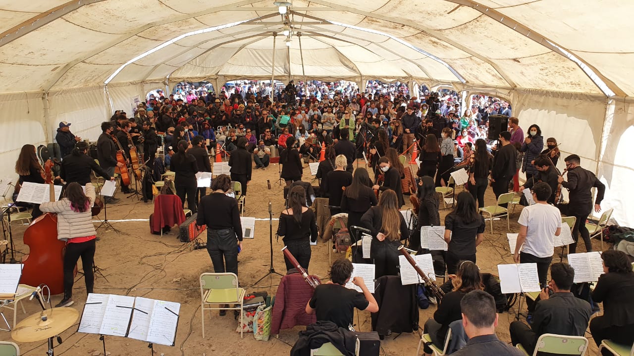 Músicos y bailarines del Instituto Universitario Patagónico de las Artes (IUPA) llegaron hasta esa inhóspita zona.