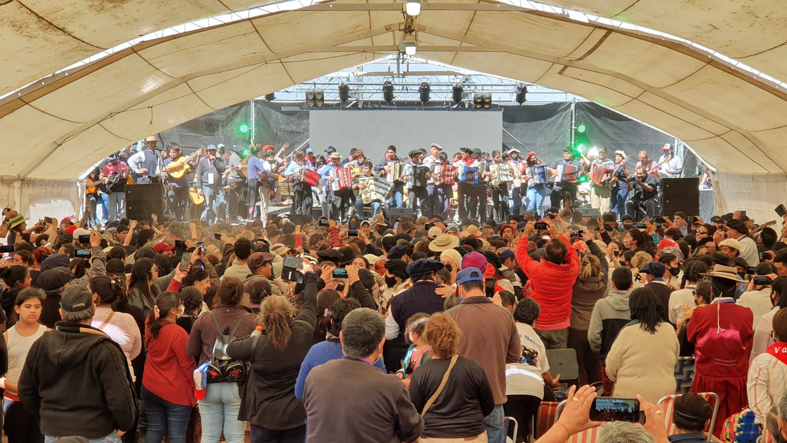 Con dos escenarios, el público pudo disfrutar de los artistas entre los que se destacó la del reconocido músico, Saúl Huenchul. Por la tarde la fiesta fue imparable con acordeones y guitarras.