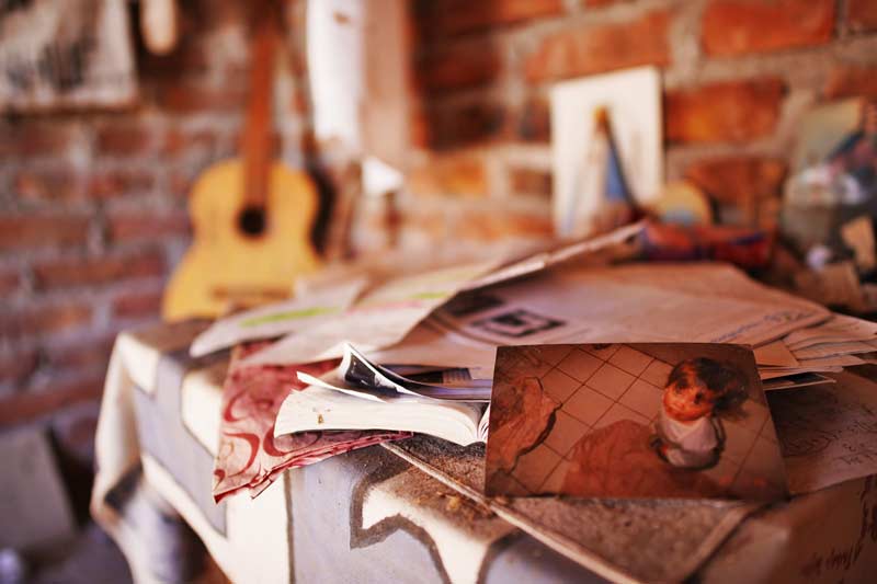Fotos, cuadernos, exámenes y varias guitarras entre las ofrendas. (Foto: Gonzalo Maldonado)