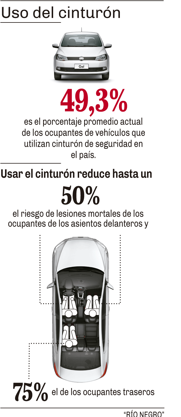 Para demostrar que se dio un paso pero aún el país está lejos de la meta, el análisis de los resultados arrojó que a nivel nacional, sólo el 55% de los conductores utiliza el cinturón de seguridad, proporción que se reduce al 42,8% entre copilotos y al 19,9% entre ocupantes traseros.
