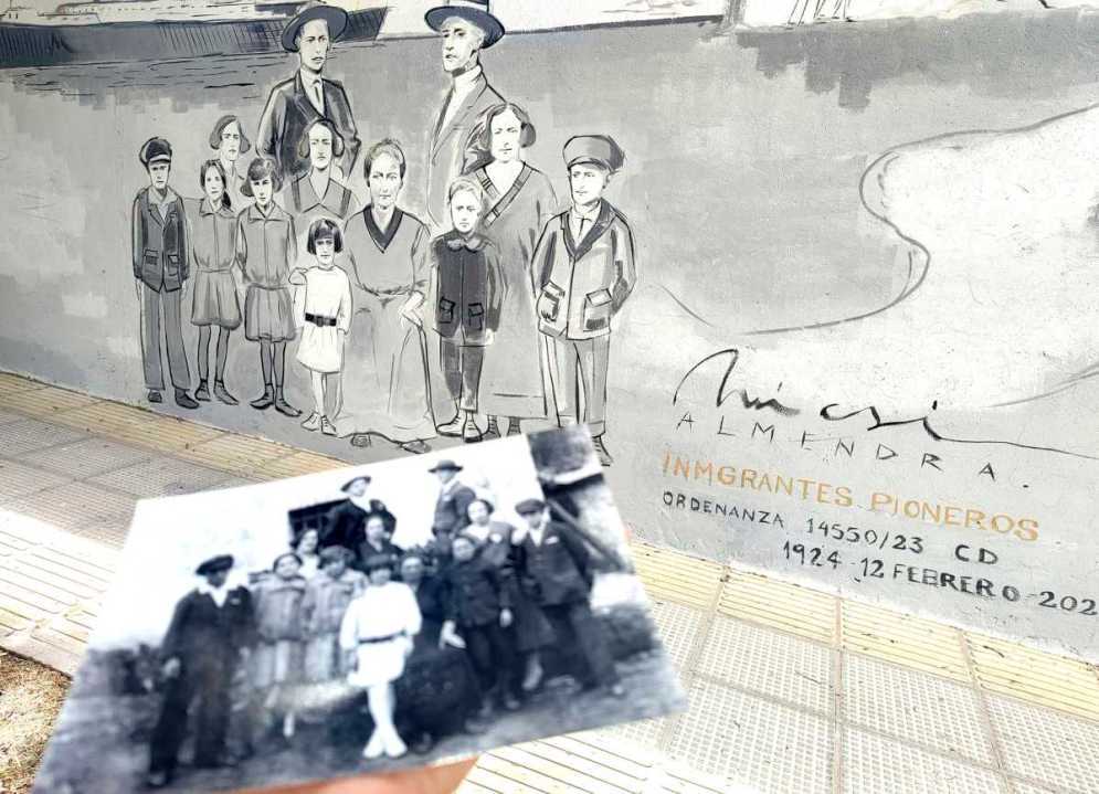 Un mural en la casa de su bisnieto Héctor la muestra rodeada de sus polluelos, los más grandes estrenando la mayoría de edad, los más chicos todavía con la picardía de las travesuras embarrándoles los zapatos. Ese día partieron en barco para venir a Argentina, quizás por eso vieron la importancia de plasmar la jornada en una foto todos juntos, como recuerdo de un quiebre en la historia de aquella viuda de 47 años, 10 de sus 11 hijos y una nuera.