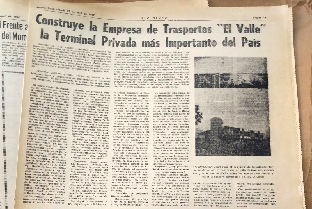 “Hoy se inaugura”, titulaba el diario RÍO NEGRO en su edición del sábado 1° de junio de 1968, hace 55 años. Con ese paso, se oficializaba la apuesta más arriesgada de la Cooperativa, que así abrió un ciclo de casi 30 años. “El Valle” había nacido como un grupo de trabajadores que buscaban mantener su fuente de ingresos, después de que el gobierno de Arturo Frondizi, con Álvaro Alsogaray como ministro de Economía, decidiera desprenderse de Autorrutas Argentinas – Zona Sud, la encargada del transporte regional, entre 1948 y 1961.