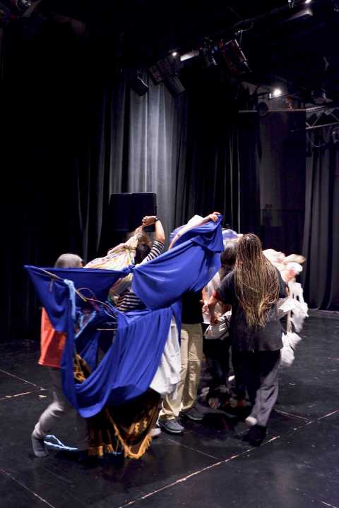 Cuenta también que suelen caminar por bosques y montañas, sintiendo el viento fresco y limpio del aire, lagos y miradores. Que algún día sorpresivo llega Horacio Occhi de Aluminé y comparten hallazgos, dudas e interrogantes de cada investigación. «Nos acompañamos y asistimos en los proyectos, registramos, escribimos, tiramos ideas, cargamos cosas en las mochilas, elegimos escenografías, recolectamos materiales, creamos objetos, esculturas, cosas», agrega. Y señala que cada artista se prepara para su trabajo, y al mismo tiempo para el hacer de los demás: «El encuentro entre artistas residentes y artistas de la zona siempre se activa».