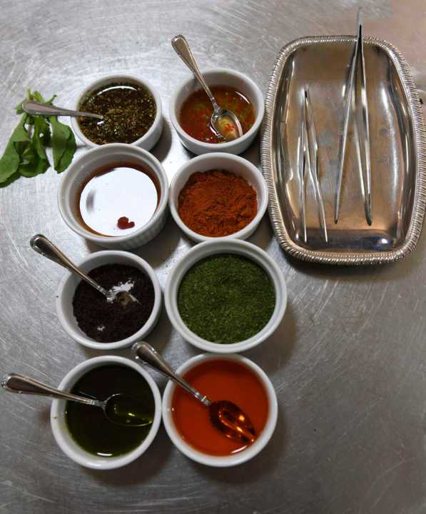 “Sí, la presentación de la comida en los platos combina con la deco del restaurante. ¿Por ejemplo? Los vitrales de algunos muebles bien lo podemos encontrar replicados en reducciones de vino, acceto, polvos de albahaca y perejil, semillas y tomates confitados al alrededor de una carne recién hecha. “Presto muchísima atención a los emplatados, a que cada comida sea vistosa también en colores y texturas”, comenta el chef a este medio. “Eso sí, jamás una combinación o acompañamiento debe opacar el producto, jamás”, advierte.