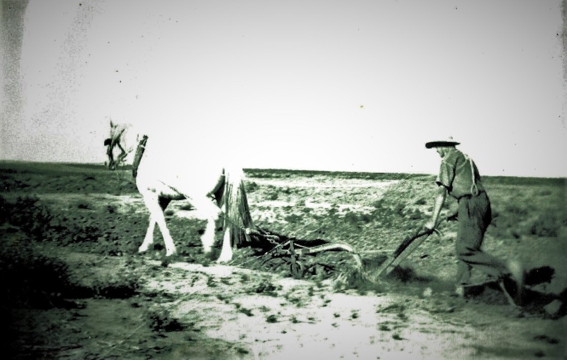 –  Las imágenes que inspiraron el Monumento de los Pioneros en la rotonda de Ruta 7 – Foto: Archivo Patrimonio Histórico.