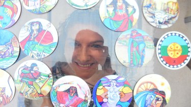 Sandra Isabel Profumo es profesora de artes plásticas. Se nota en su casa, con detalles hechos por ella misma: los cuadros, ciertos arreglos, los colores. Pero lo que la tiene desvelada estos días son unos círculos, una especie de posavasos para los que no saben nada de la materia, que son su obra más reciente: un tarot de pueblos originarios.