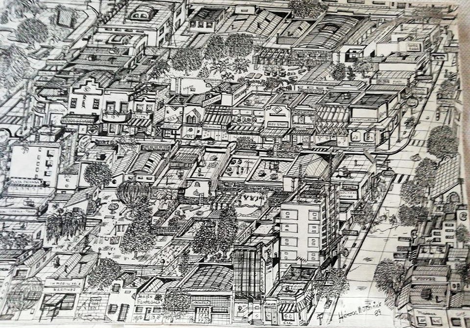 Sin formación al respecto y sin que alguien lo estimulara previamente, Héctor empezó un día a entretenerse con lápiz y papel, en el mostrador del corralón que manejaba, en la esquina de calles Maipú y 9 de Julio. La ciudad desde el aire, como en tomas aéreas, fueron sus primeros trazos relacionados con General Roca, como quien sobrevuela las cuadras y plasma lo que ve en una hoja. Pero luego la curiosidad lo llevó a ir en persona hasta los edificios que le gustaban, que le movían la nostalgia adentro, para empezar a delinearlos y para que los cambios del progreso no los borraran del todo. Ese fue el legado de Mutchinick, encuadrar en sus detalles y en sus marcos artesanales lustrados con betún, pedazos de memoria e identidad local, hecha de ladrillos.