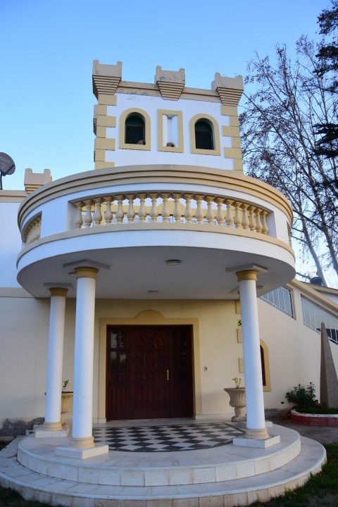 Las almenas en los paredones, hoy ausentes, parecían inspiradas en la fortaleza de un castillo, custodiado por otras dos estatuas, como centinelas, que miraban hacia la calle y las vías del tren. El archivo de sus descendientes señala que esa casa de varios pisos comenzó a construirse en 1937 y fue terminada en 1939. Allí todavía viven Concepción (Chichita), hija de Amadeo, e Isabel, una de sus nueras.