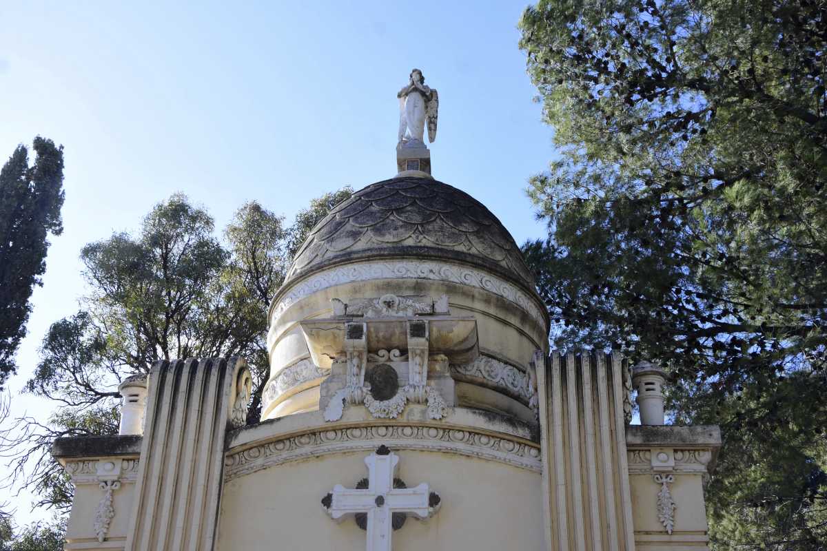 La misma cúpula con ángeles aquí y allá, las mismas tejas escamadas en los tres casos, la inspiración en las fortalezas medievales que parecen castillos, también presente. Dos para mejorar la calidad de vida en esta tierra y otra para albergar el descanso de los que ya no están entre nosotros. Lo que es seguro es que las tres fueron pensadas con la idea de trascender las generaciones y que ninguna pasara desapercibido.