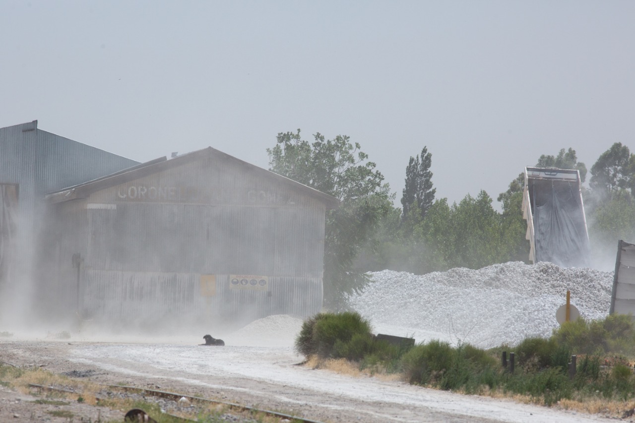 Hablar con Eva Camu un día de viento es estremecedor. Esta vecina de J.J. Gómez desde hace más de 12 años que sufre los efectos de la planta de yeso que opera en la estación de trenes de ese barrio ubicado en la zona oeste de Roca.