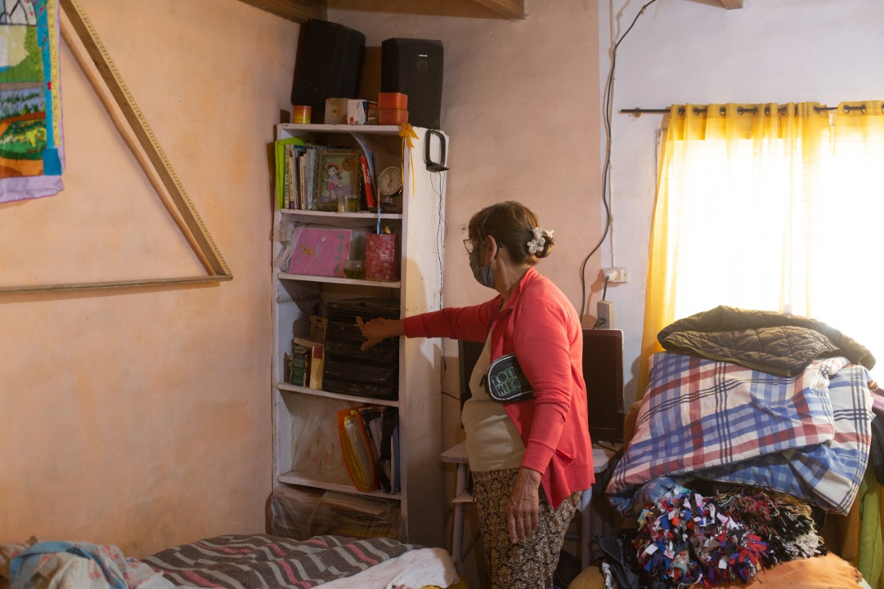 «Eso es lo de menos. Mi sistema respiratorio sufre también porque ese polvo se te instala en los pulmones. Y con la vista pasa lo mismo, ya no saben qué remedio darme porque el daño es increíble», dice Eva, mientras advierte al periodista y al fotógrafo que recorren la casa que ya tienen los ojos rojos por el efecto de las partículas que dañan la vista.