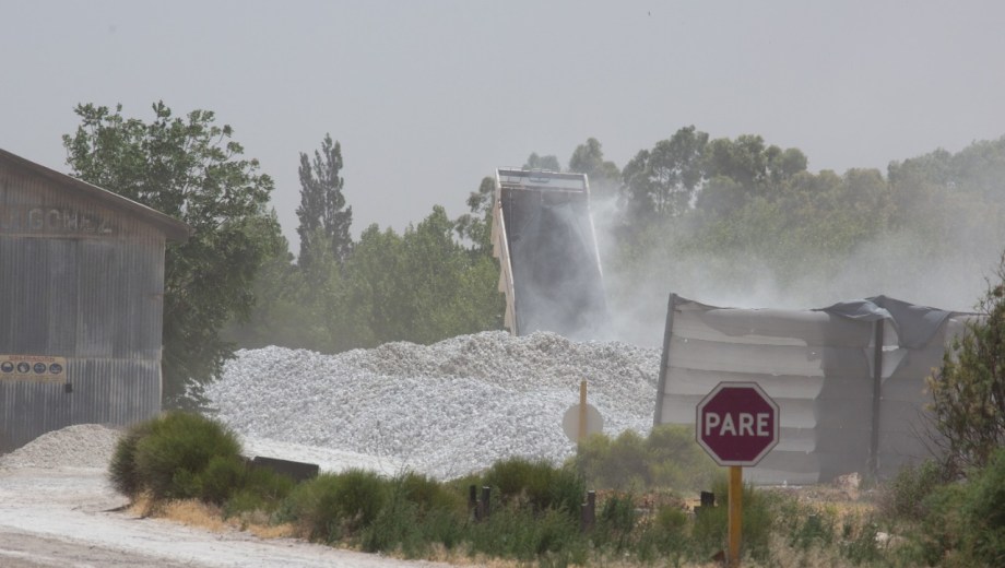 «Acá estamos, mire el viento que hay esto es increíble. Pasen y vean», es la primera invitación que hace esta vecina desde la vereda de su casa, mientras que las ráfagas de viento superan los 80 kilómetros por hora y la planta sigue operando sin mayores restricciones.