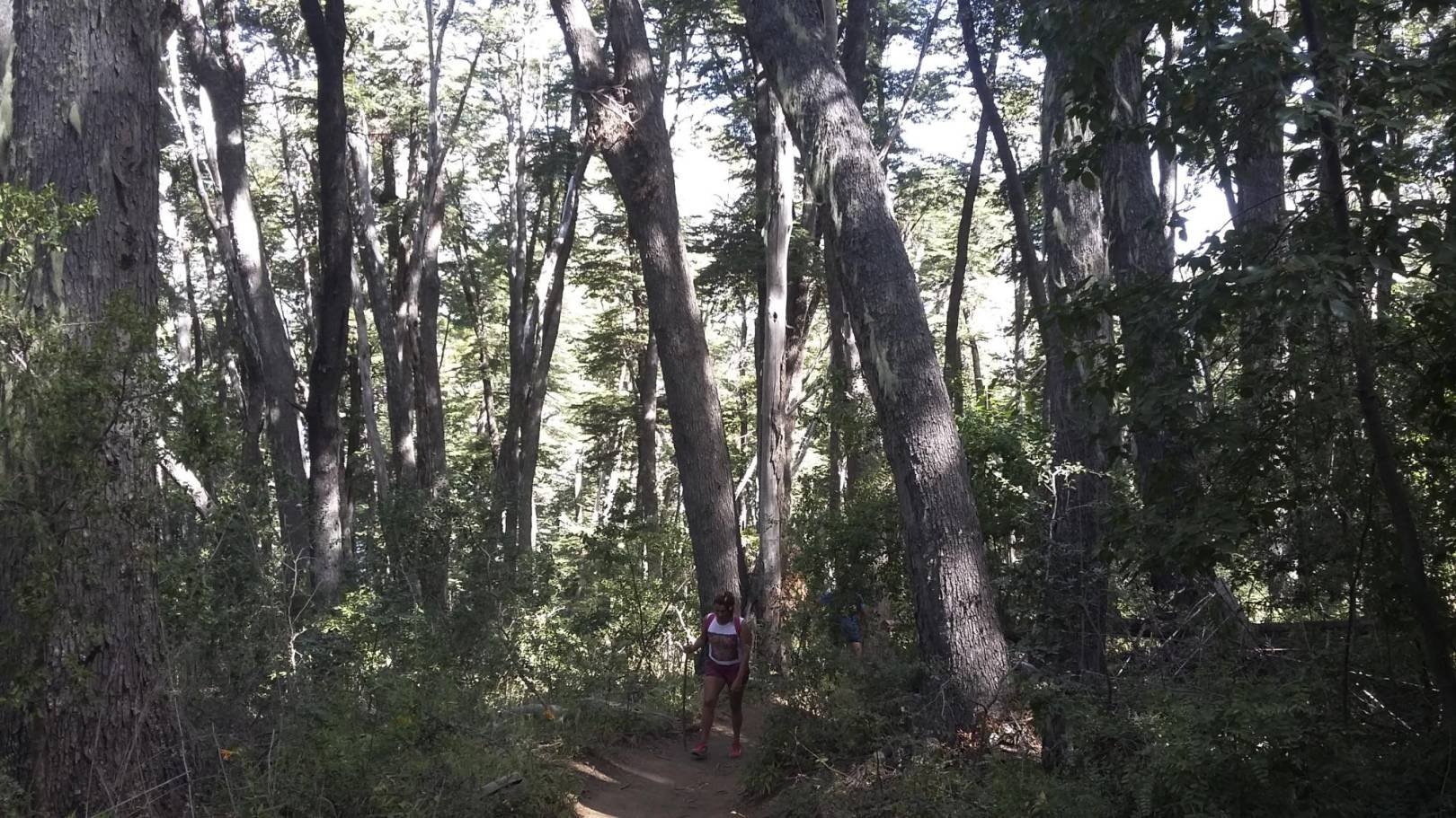 A los pocos metros, el camino se bifurca y se debe tomar la traza de la izquierda para transitar media hora por un camino con desniveles alternados con llanos, bajo la sombra de la vegetación autóctona y la caña colihue.