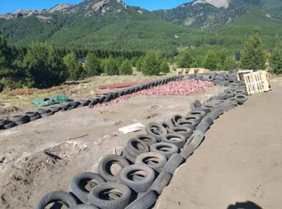 La construcción no convencional en Villa Meliquina que llevó adelante un grupo de jóvenes voluntarios con materiales reciclados terminó desapareciendo y dos camiones se llevaron los neumáticos y residuos plásticos que pensaban utilizar para la obra de unos 150 metros cuadrados.