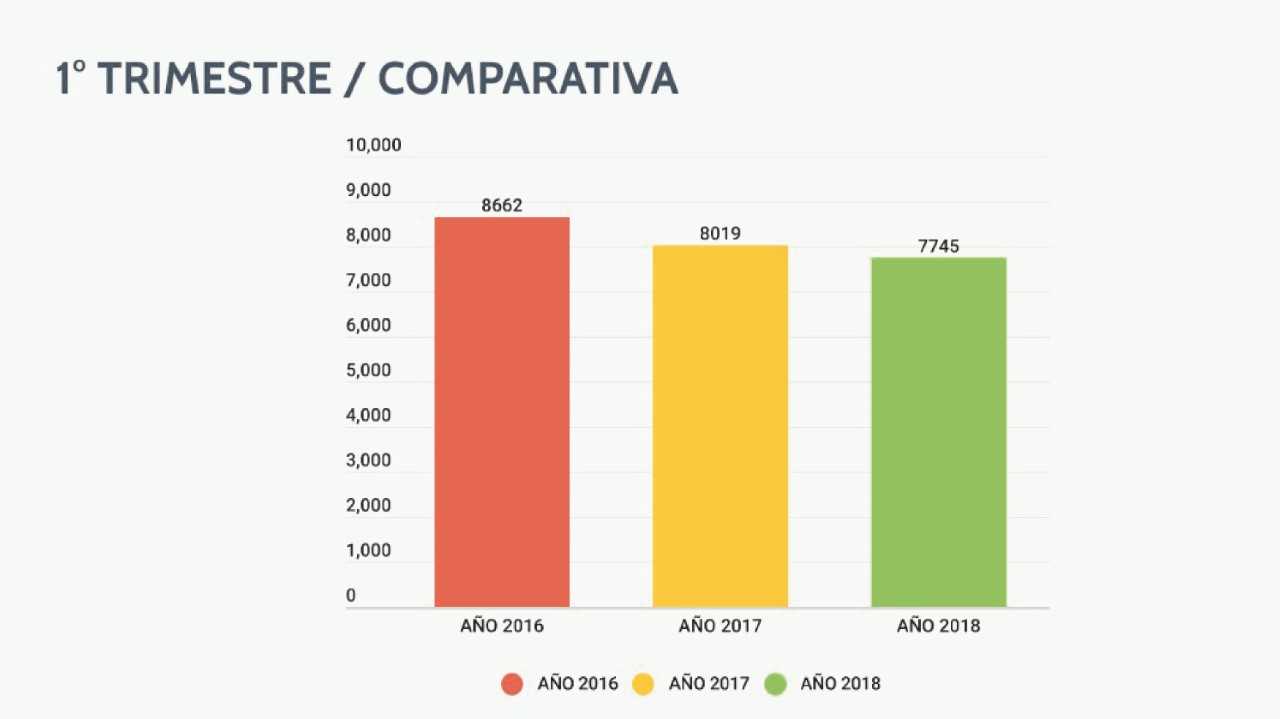 En conferencia de prensa expusieron que frente a una población que crece a raíz de 30 personas por día en la provincia, en ese contexto mostraron una comparativa de los primeros tres meses de cada año y aseguraron que la institución intervino en 2016 en 8.662 hechos de todo tipo, cifra que en año 2017 en 8.019 intervenciones y en 2018 hubo 7.745 hechos delictivos.