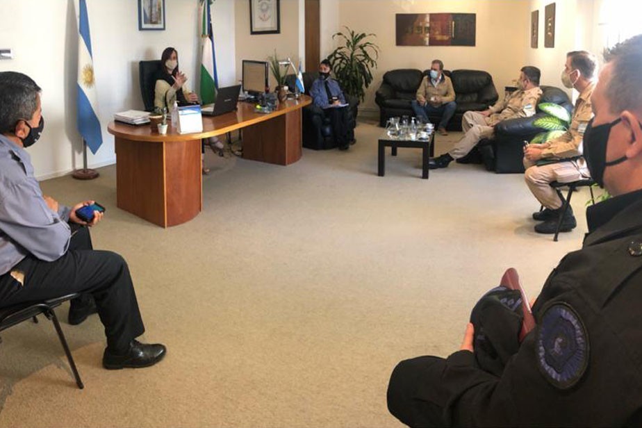 En este sentido, se desarrolló una reunión que fue encabezada por la secretaria de Estado de Seguridad y Justicia, Betiana Minor, el intendente de Viedma, Pedro Pesatti, y autoridades de la Policía de Río Negro, Policía Federal y Prefectura Naval para trazar una estrategia de prevención y control en el marco del nuevo estatus sanitario del Departamento de Adolfo Alsina en relación al covid-19.