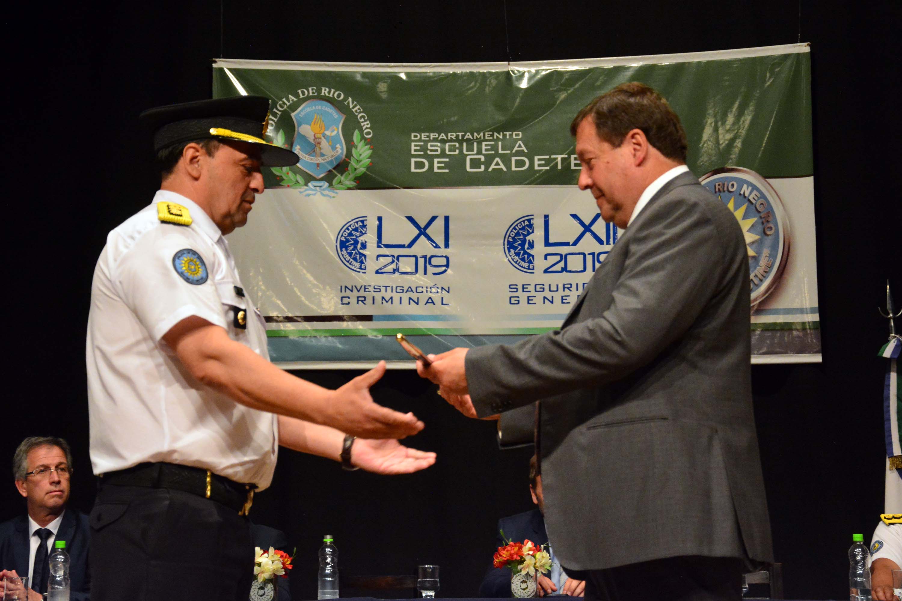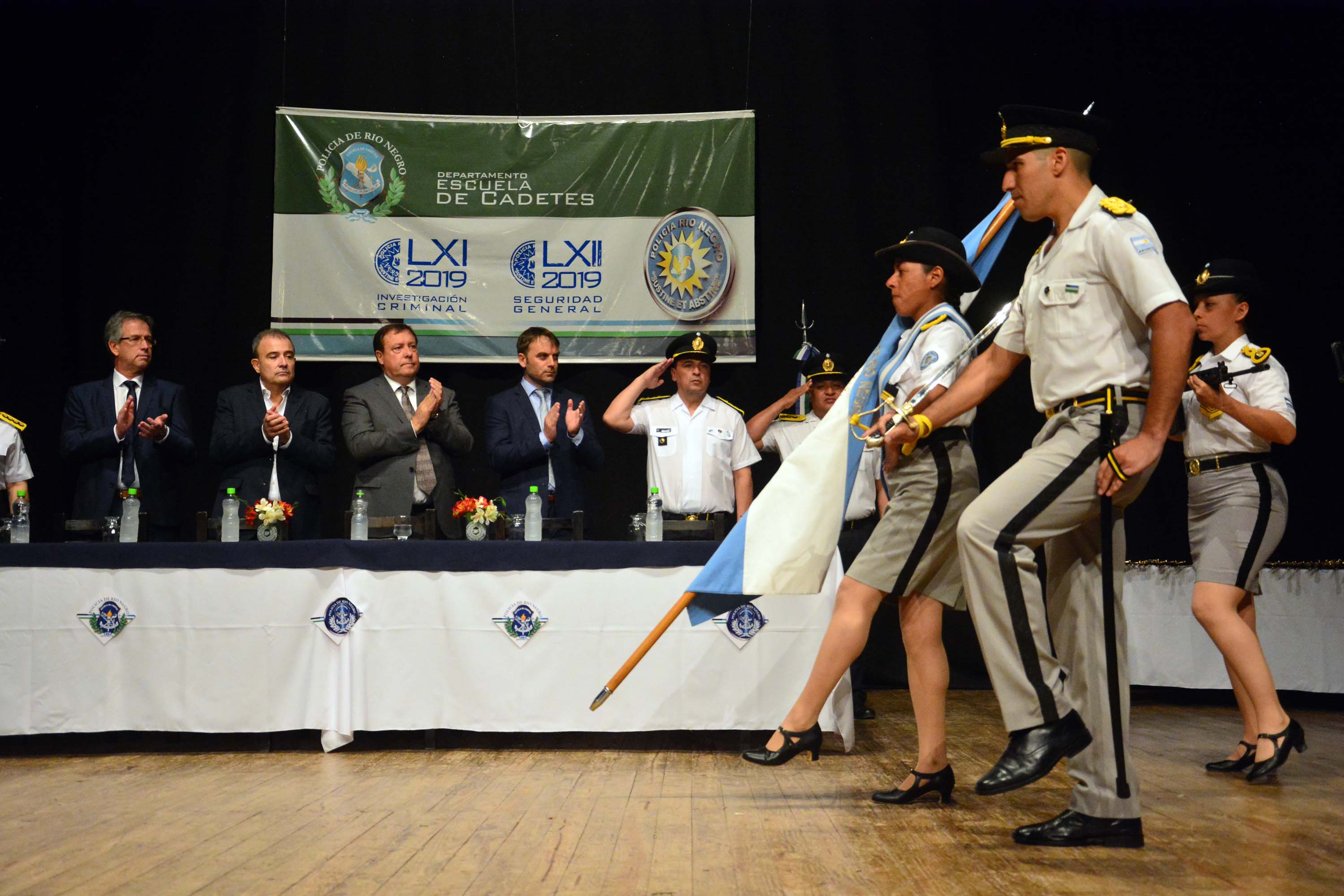 El acto fue presidido por el gobernador Alberto Weretilneck, quien estuvo acompañado por el vicegobernador Pedro Pesatti, el Ministro de Seguridad y Justicia, Gastón Pérez Estevan, el Procurador General Crespo Jorge Oscar; el Jefe de la Policía Comisario General, Daniel Roberto Jara y la Subjefe Comisario General, Rosalba Beatriz Castillo