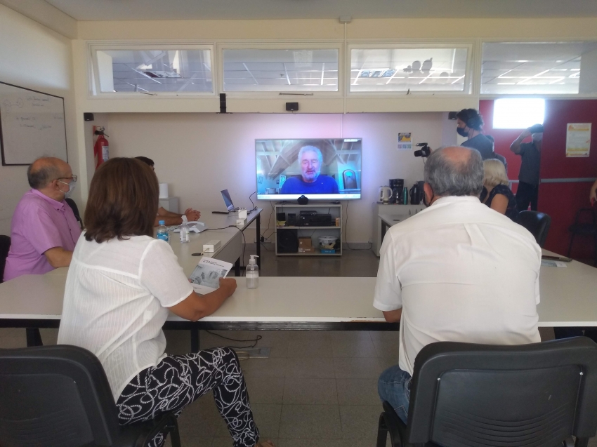 Luego, mantuvo una videoconferencia con el rector de la UNRN, Juan Carlos Del Bello y estuvo acompañada por el diputado nacional Luis Di Giacomo, el titular de Lotería de Río Negro, Jorge Antonio Manzo y el legislador provincial Marcelo Szczygol.