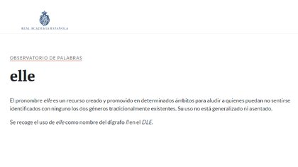 La RAE estudia incorporar el pronombre «elle» a sus definiciones
