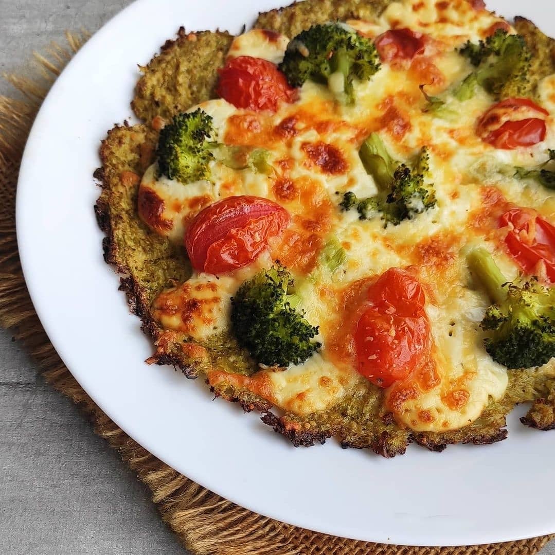 Lo primero que van a hacer es cocinar el brócoli, yo lo hice al vapor así no queda con tanta cantidad de agua. Lo escurrí, lo corté y aplasté con ayuda de un tenedor hasta que quedó una especie de puré. Después condimenté y agregué 1 huevo batido. Esa mezcla la pasé a una placa aceitada y le di forma circular (lo ideal es que usen de silicona para evitar que se pegue). Después de llevarlo al horno por 15 minutos agregué el queso, los tomates y más brócoli. Una vez que se gratine el queso ya está listo. Dejá enfriar un poco y a disfrutar.