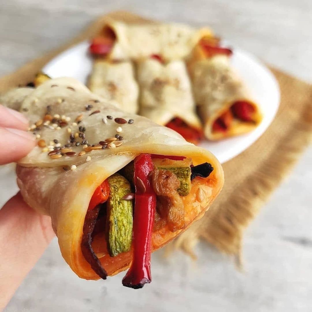Súper fáciles de preparar, obvio si tienen tiempo lo hacen con masa casera integral (mezclan harina integral y agua hasta que se forme una masa) y si no tienen tiempo usan tapas de empanadas y tratan de agregarle fibra usando semillas. Corté algunos vegetales que tenía en la heladera en tiritas: morrón, cebolla, zanahoria y zucchini. Después los rehogué con una gota de aceite hasta que se ablandaron un poco. Los coloque sobre la tapa de empanada, cerré y por arriba agregué semillas. Llevé a horno medio por aproximadamente 20 minutos y listo.